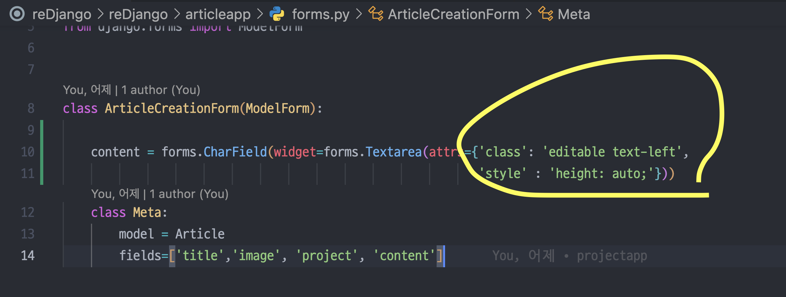 content = forms.CharField(widget=forms.Textarea(attrs={'class': 'editable text-left',