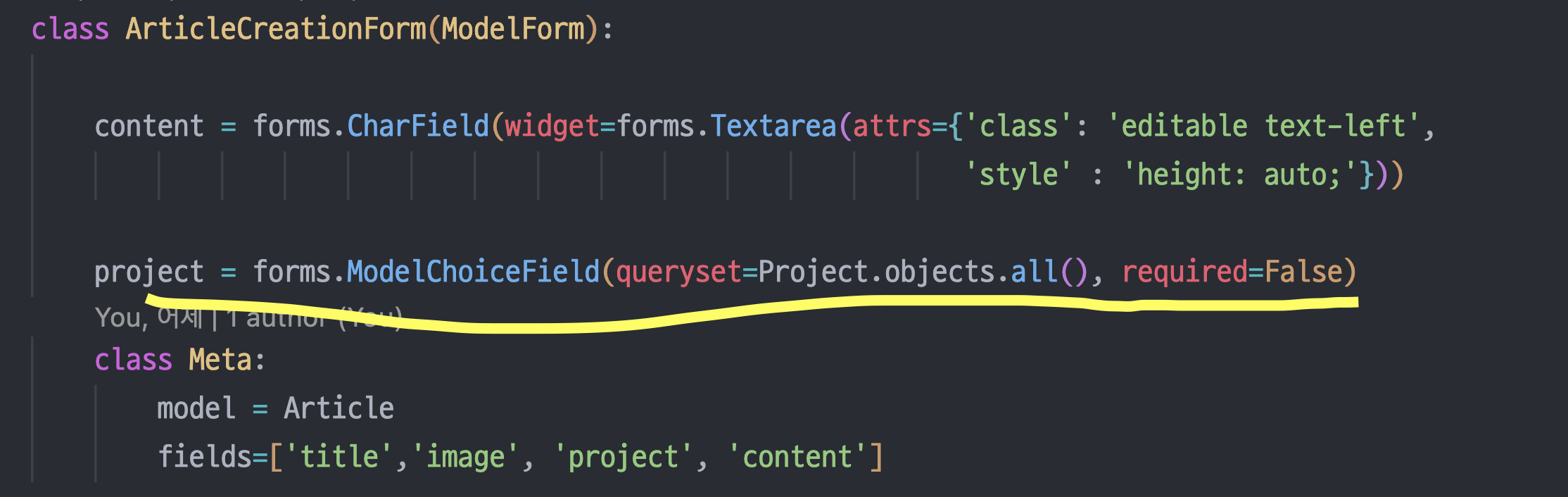 project = forms.ModelChoiceField(queryset=Project.objects.all(), required=False)
