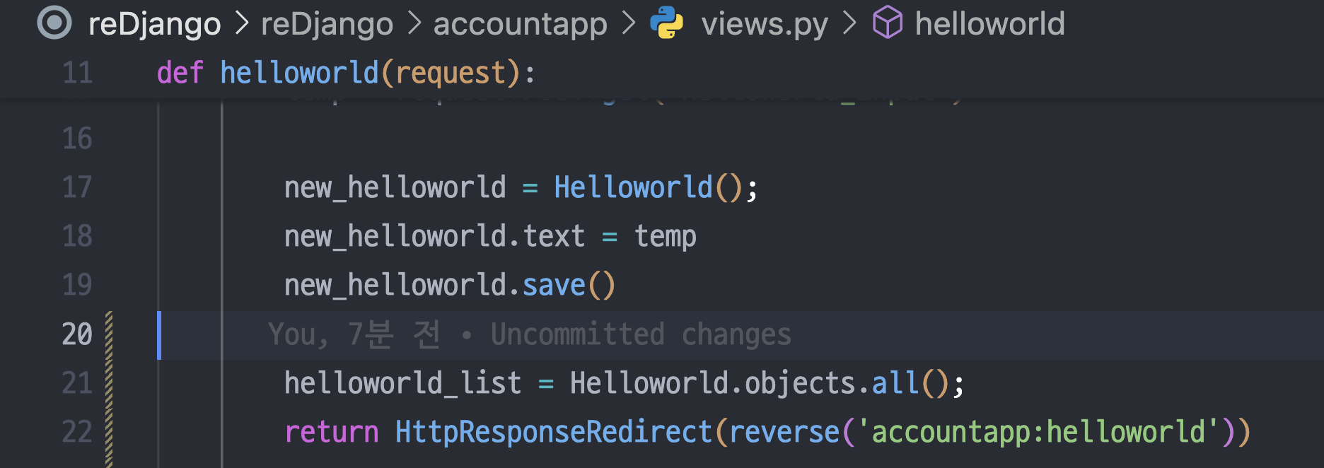 이제 views.py 안에서 new_helloworld라는 객체가 존재.
