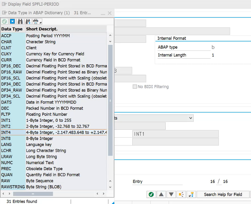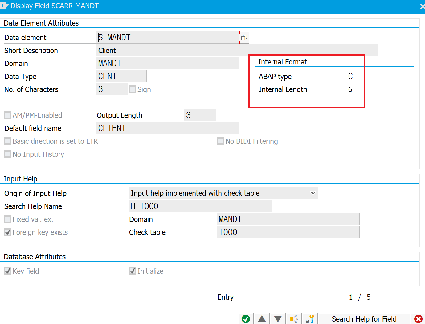MANDT 필드를 클릭해 보면 ABAP type과 자리수를 확인할 수 있다.