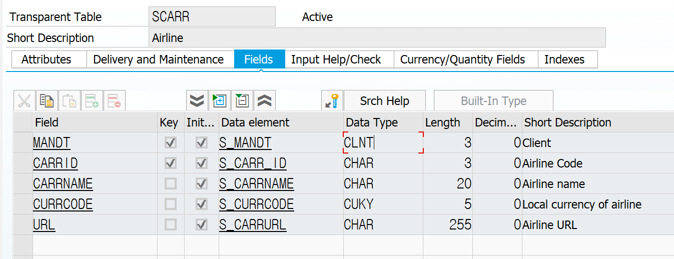 Data Type에 CLNT, CHAR, CUKY 등이 보인다.