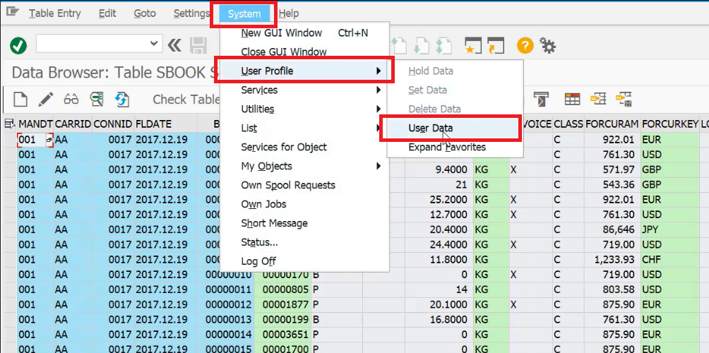 System → User Profile → User Data