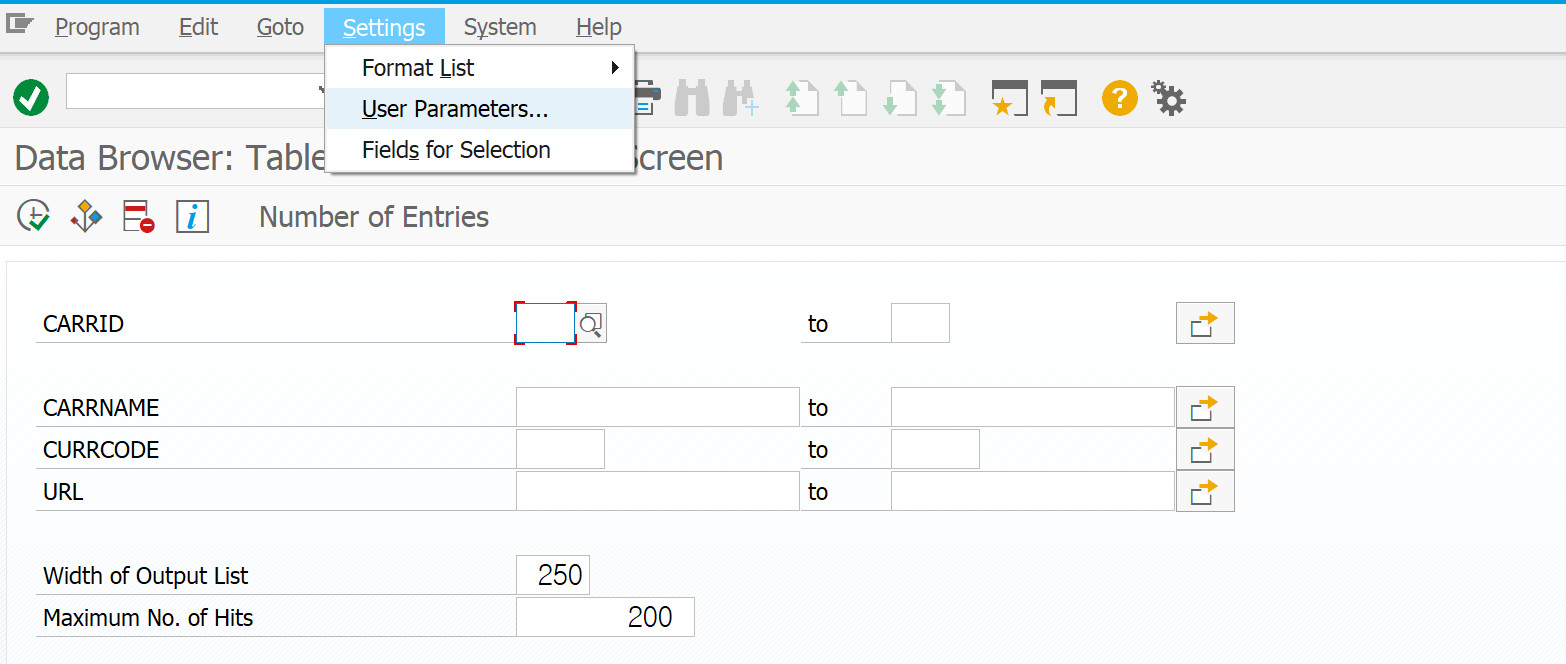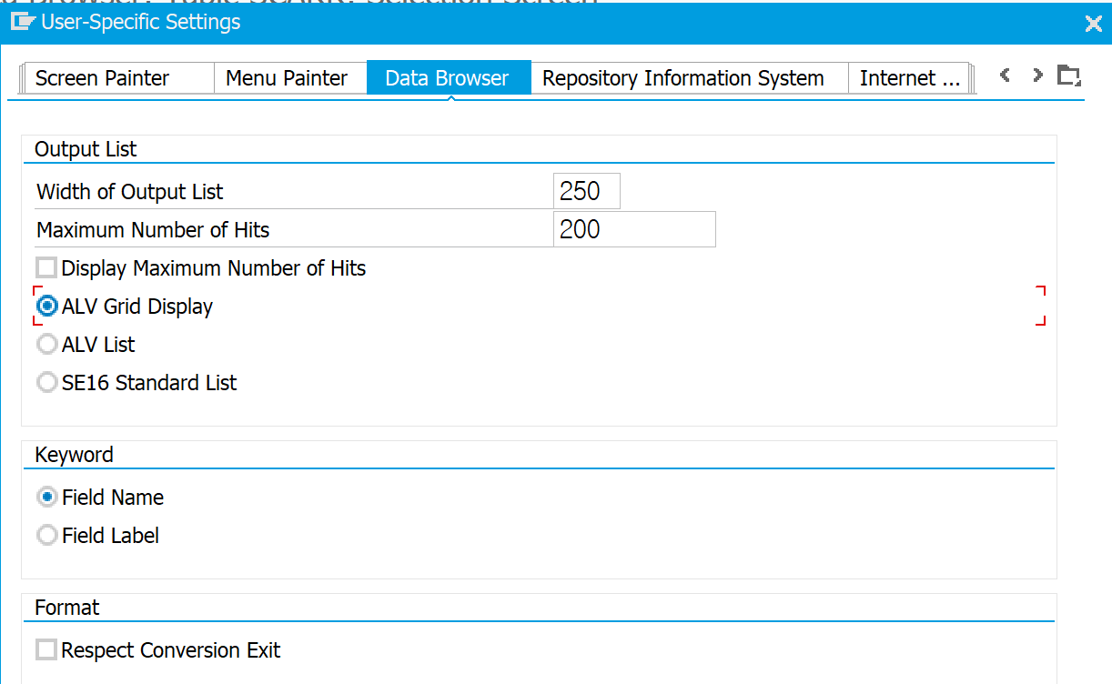 SE16 Standard List → ALV Grid Display로 변경 후 저장