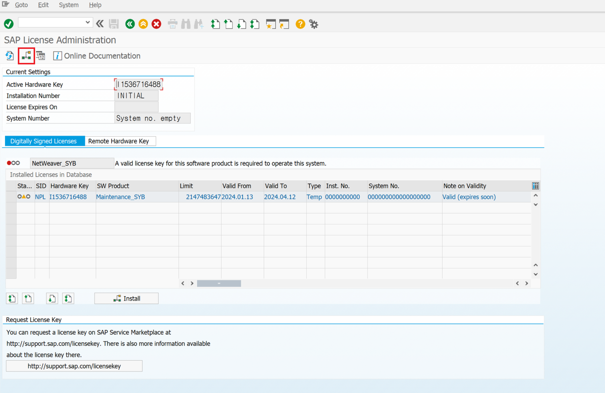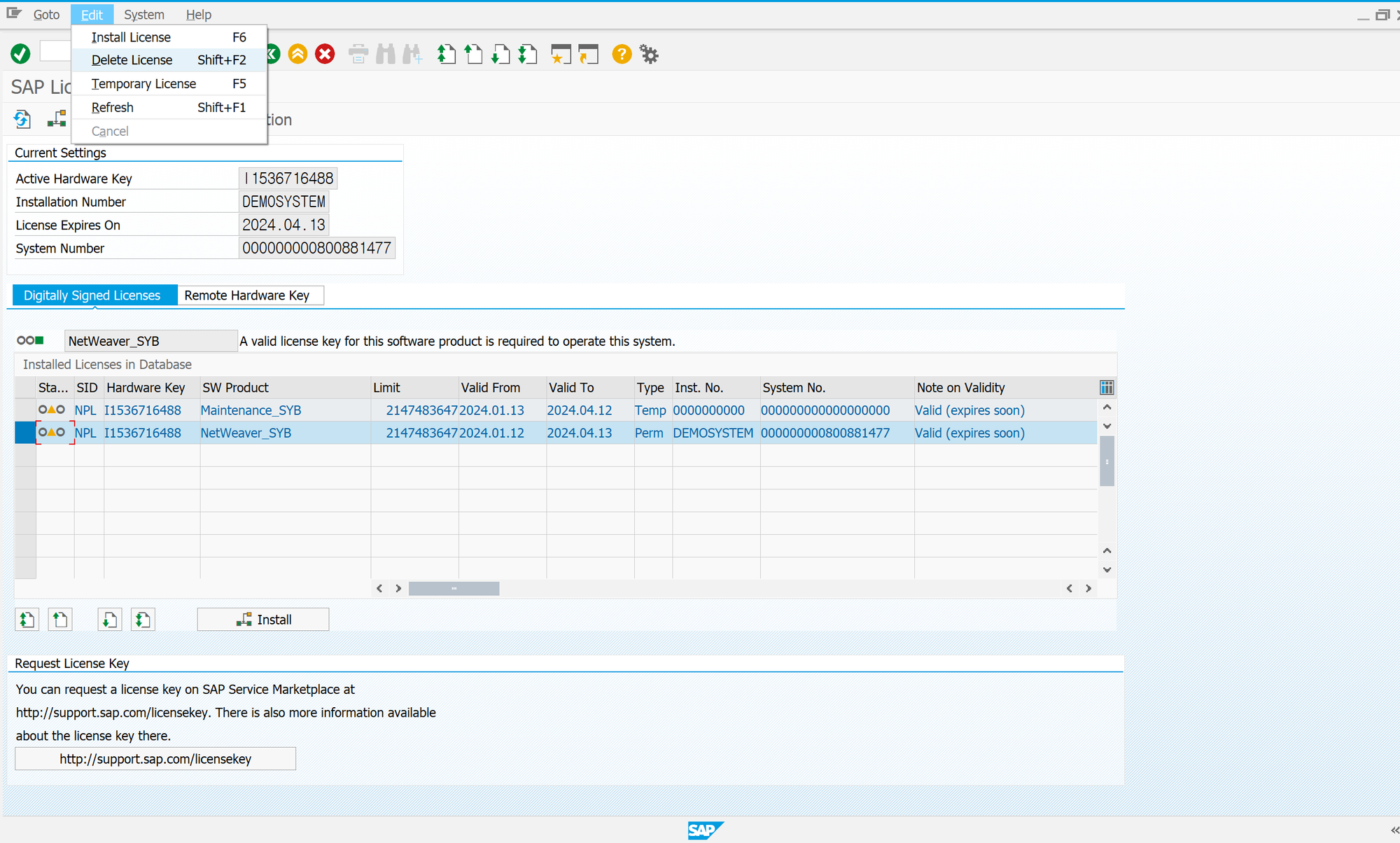 라이센스 만료날짜와 System No. 까지 잘들어가면 갱신 성공!