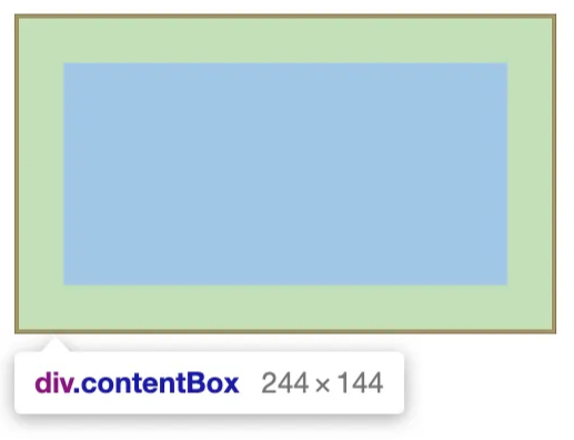 200px(width)+20px*2(padding)+2px*2(border)= 244px(콘텐츠의 크기)