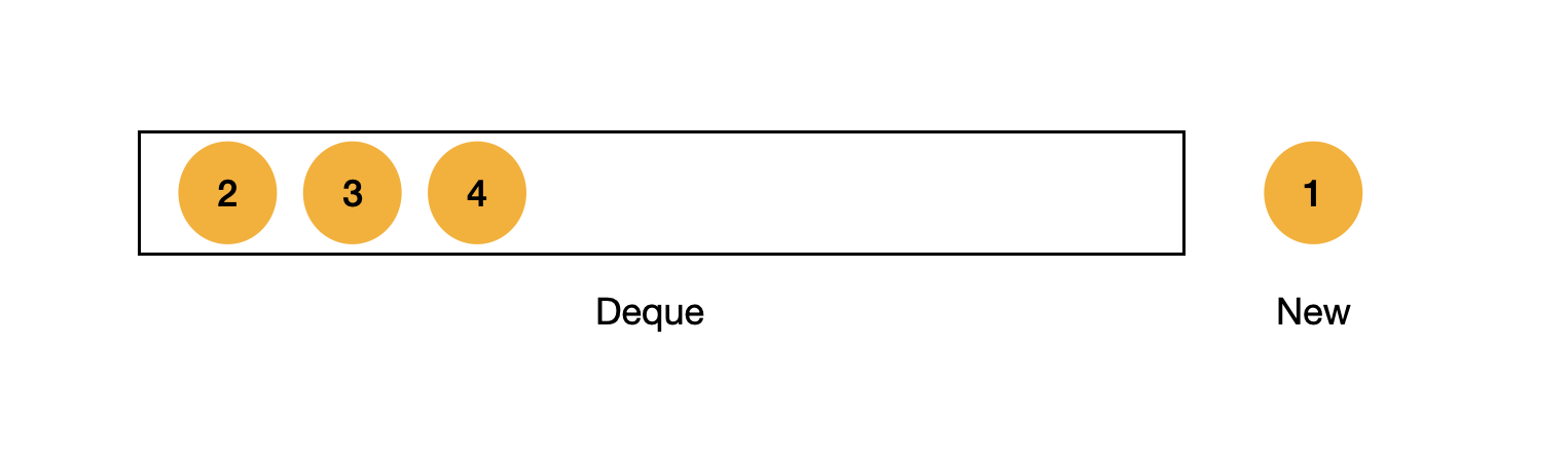 1 값을 가진 Ai를 Deque에 넣어야 할 때 이제 큐에 있는 2, 3, 4는 필요가 없다.