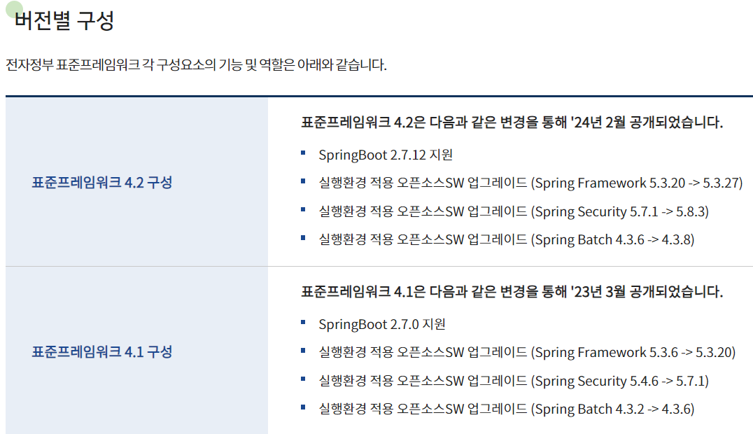 JDK 버전 기준으로 표준 프레임워크 버전이 달라진다.