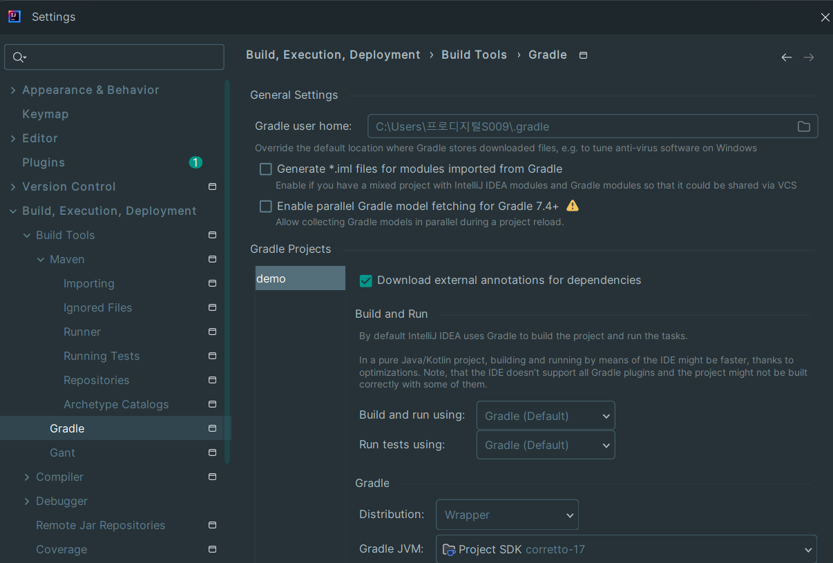 이 부분에서 JVM 버전을 11 -> 17로 수정하였다.