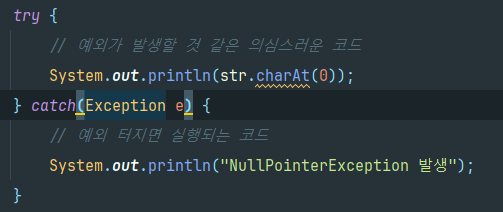 3. 예외가 발생한 코드를 try - catch로 묶어준다.