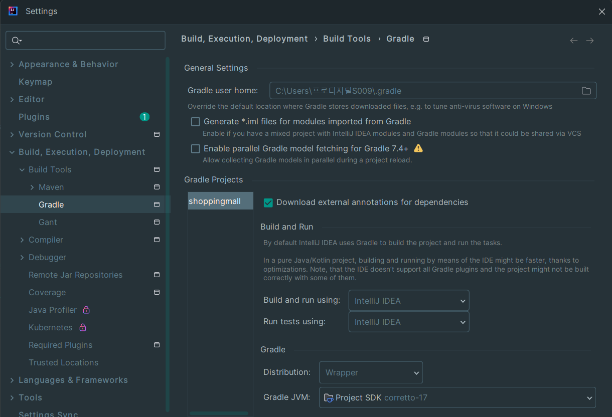여기서 intellJ로 설정하면, gradle 대신 intellJ의 현재 class 파일의 main method가 실행된다.