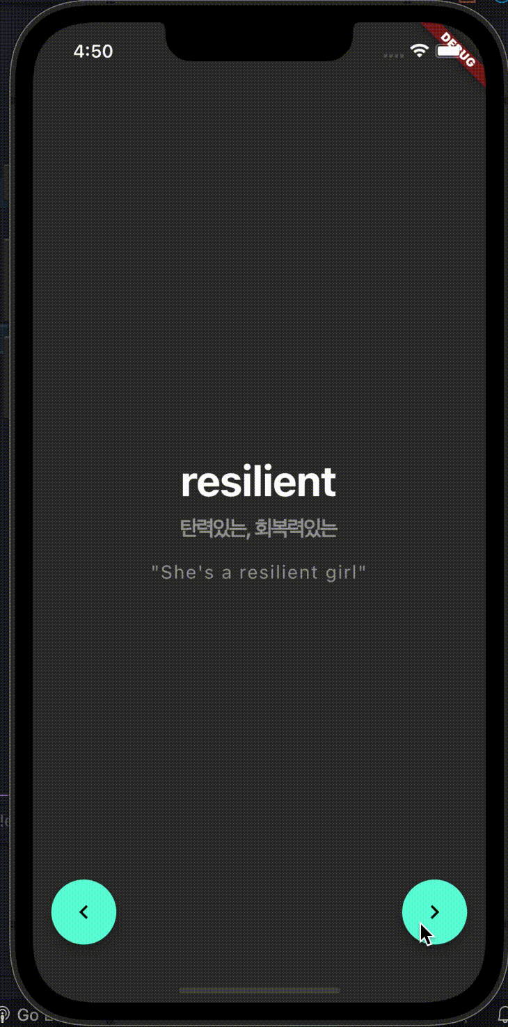 - 왼쪽 버튼을 클릭하면, 이 전 단어로 이동합니다.