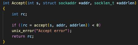 Accept(listenfd, (SA *)&clientaddr, &clientlen);