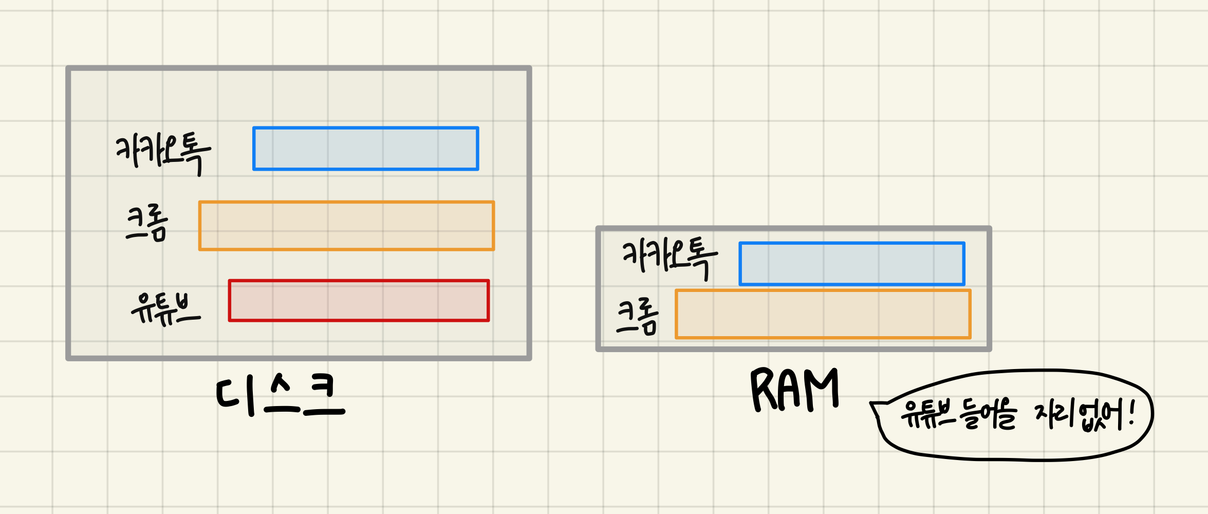 결론적으로 여러 프로그램이 동시에 실행되기에 공간이 부족하다.
