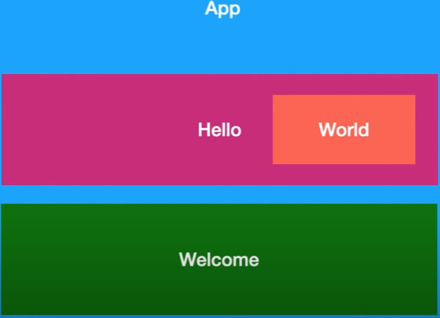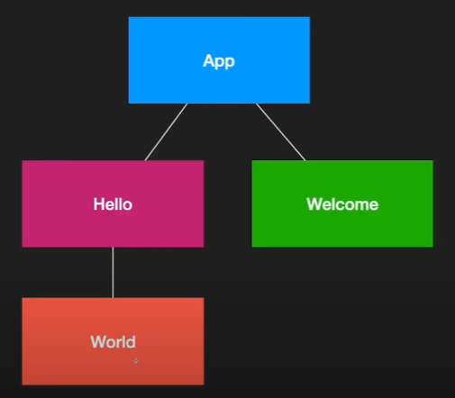 App 컴포넌트 안에 Hello 와 Welcome 컴포넌트가 있고, Hello 컴포넌트 안에 World 컴포넌트가 있다.