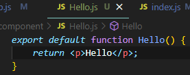 Hello.js 의 return 문을 div 로 감싸지 않고 코딩하면 에러가 발생한다. → JSX 는 하나의 태그만 만들 수 있기 때문이다.