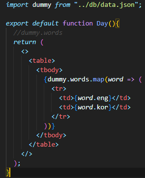 day 리스트에서 특정 날짜를 클릭했을 때 단어들이 나온다. → dummy 데이터를 이용하자.