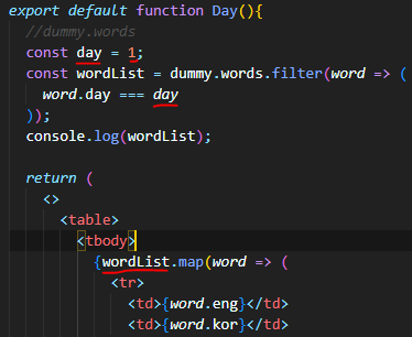 단어 날짜가 1인것만 map을 통해 반복문으로 출력해보자.