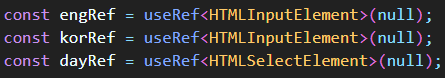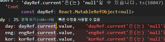 if 문의 구문에서 dayRef, engRef, korRef 의 current 3가지가 검증되어 하단의 코드로 들어가기 때문에 에러가 해결된다.