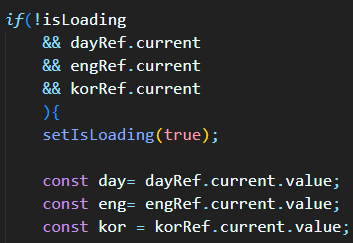 dayRef, engRef, korRef 의 current 3가지에서 하나라도 없다면, 하단의 코드는 실행되지 않는다.