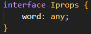 인터페이스 IProps 를 선언한다. 그리고 {word:w} 라는 props 에 IProps 를 선언한다.