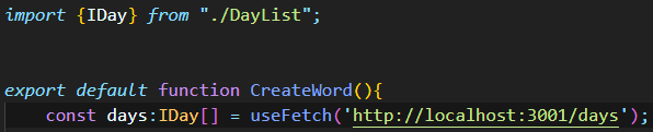 DayList.tsx 의 IDay 를 export 하고, days 에 IDay 를 지정한다.