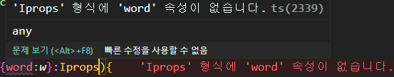 그렇게 되면 에러가 발생하는데, Iprops 형식에 word 라는 프로퍼티가 없어서 그렇다.