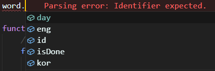 word.id 에서 에러가 난 것은 IWord 인터페이스의 존재를 몰라서다.