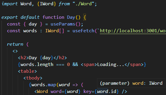 words 를 반복하고 있는데, words 가 IWord 의 배열이라는 것을 알려주자.