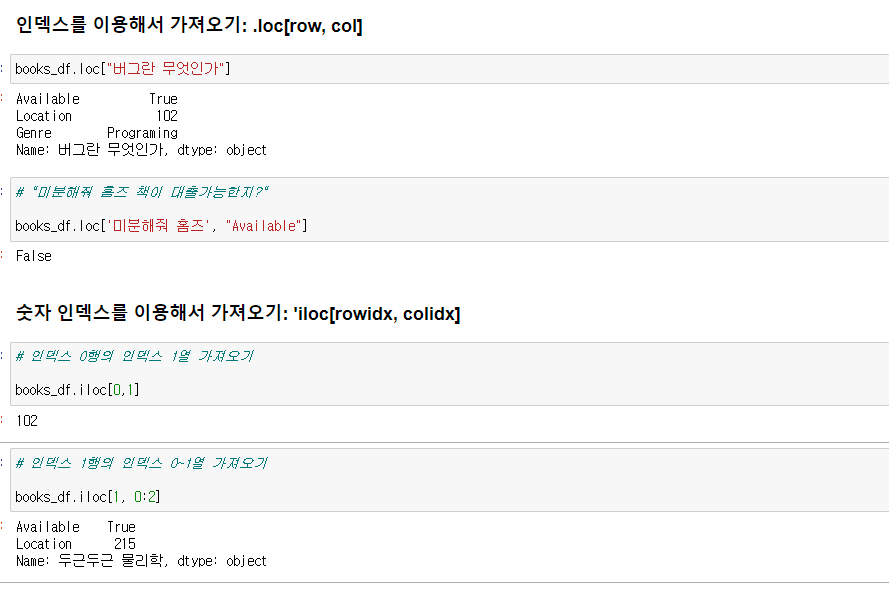 .iloc[rowidx, colidx] 를 이용해서 특정 행의 인덱스를 가져올 수 있음.