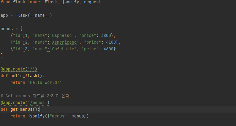 Flask 간단한 예제를 한 뒤 REST API 를 구축