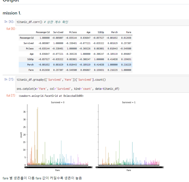 타이타닉 데이터셋 에서 Fare별 생존률 을 시각화 했다.