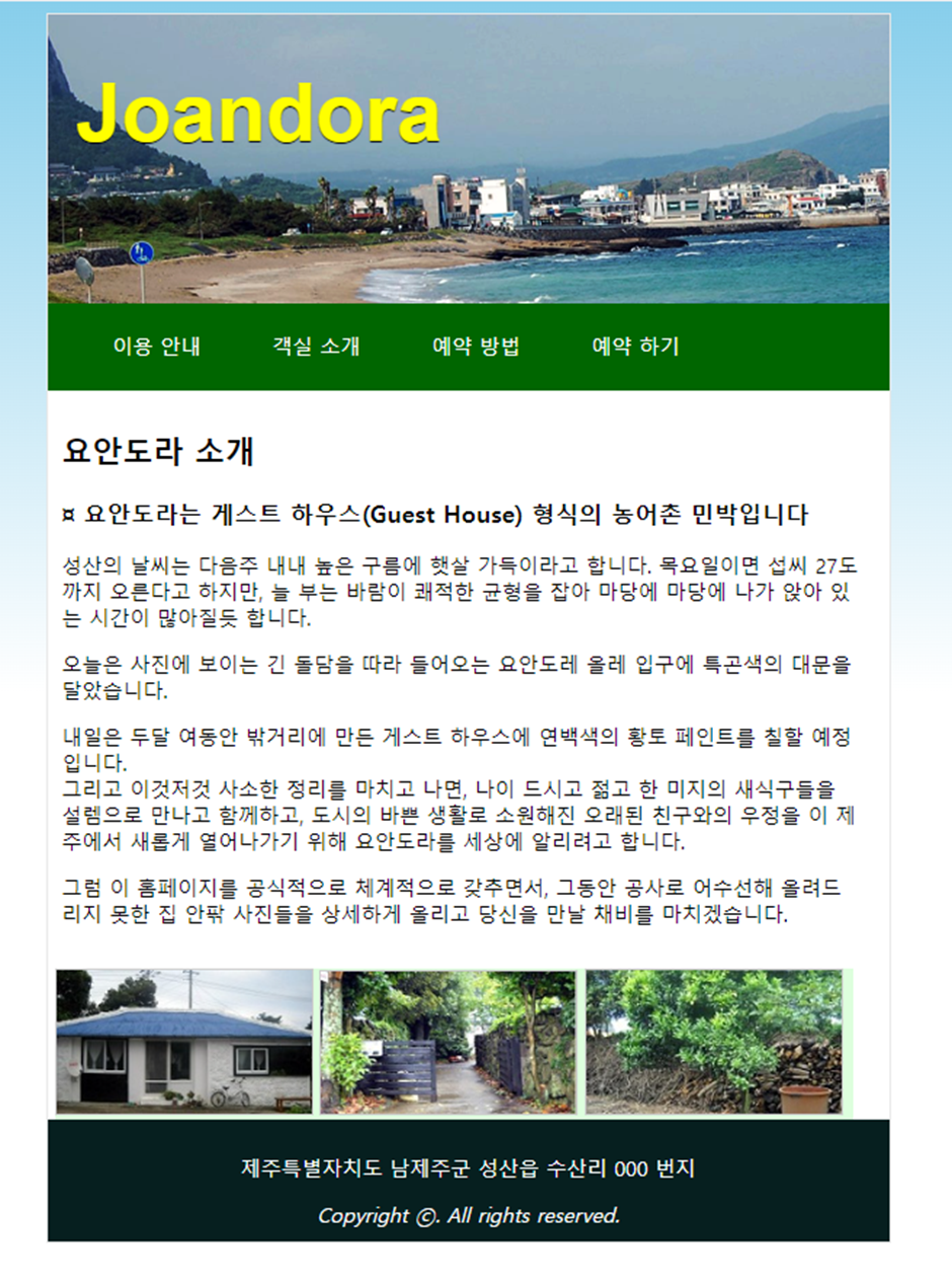 <h3>¤ 요안도라는 게스트 하우스(Guest House) 형식의 농어촌 민박입니다</h3>