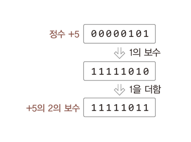 먼저 보수(complement)는 보충해주는 수이라는 뜻입니다. 먼저 1의 보수를 구한다음 가장 낮은 비트에 1을 더하면 됩니다.