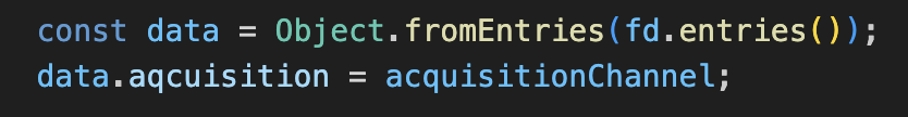 const data = Object.fromEntries(fd.entries());