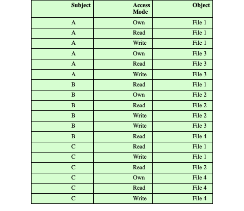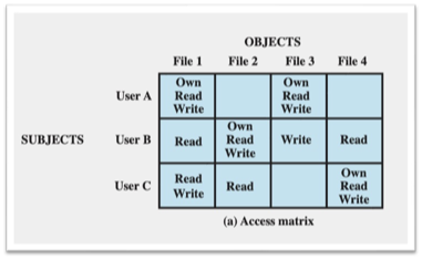 - Access right(접근 권한) : 주체가 객체에 접근하는 방법 기술