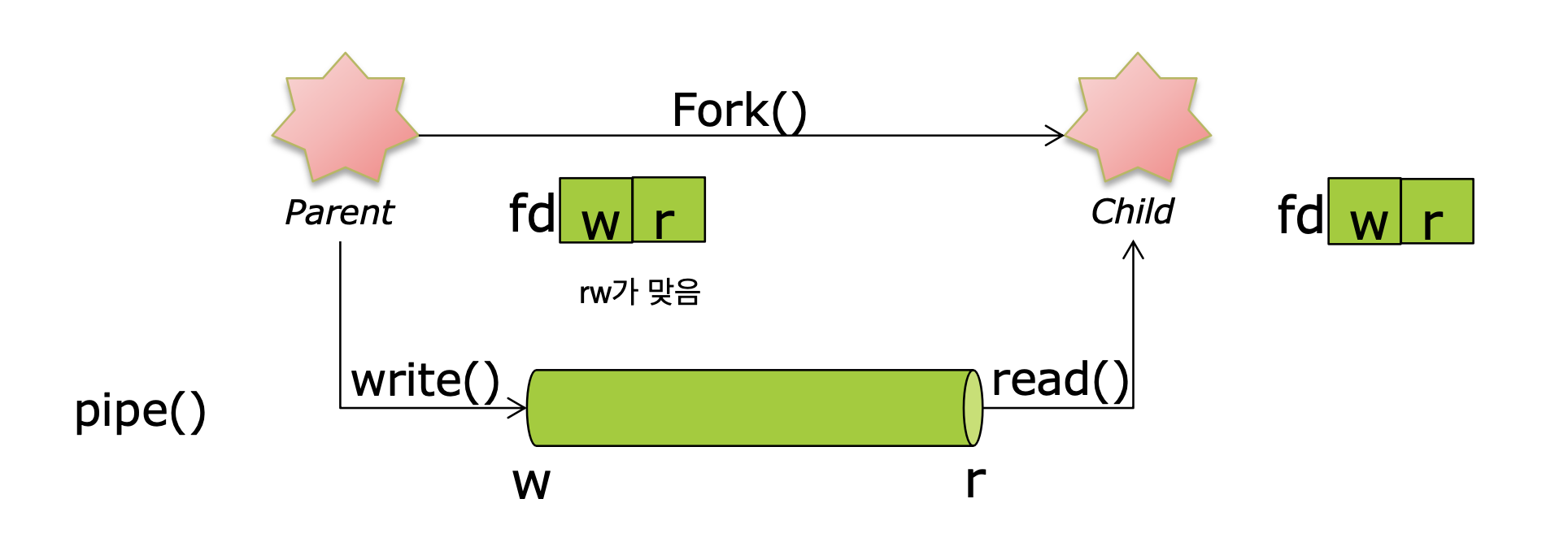 두 프로세스간의 데이터 통신을 위한 관 역할. 데이터를 한쪽에서는 쓰고, 한쪽에서는 읽는다.