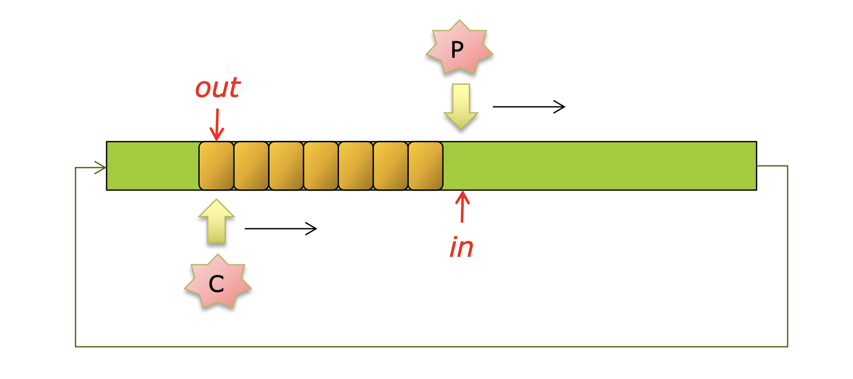 out = (out + 1) % BUFFER_SIZE;