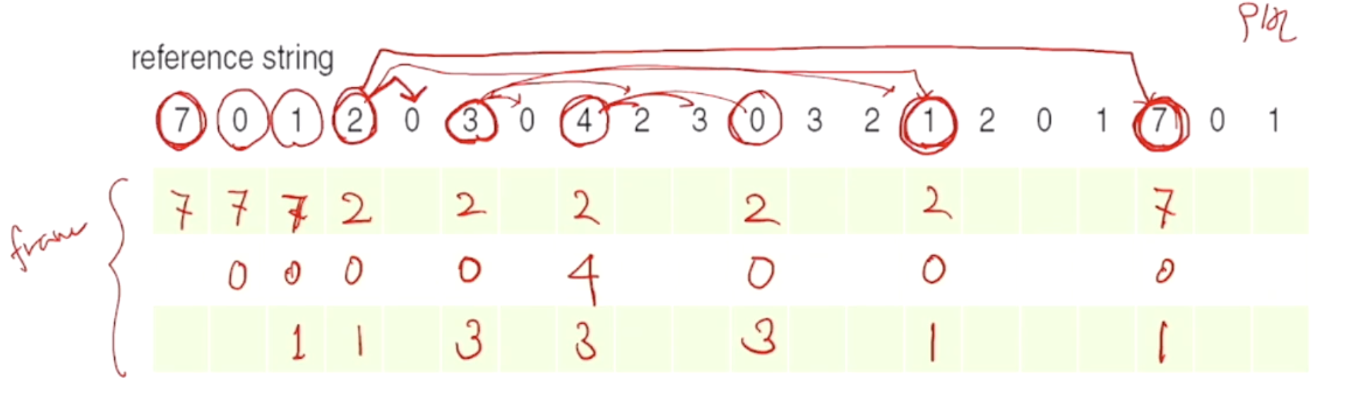 - 만약 page fault가 발생한다면 가장 늦게 접근한 애들 제외하면 된다.