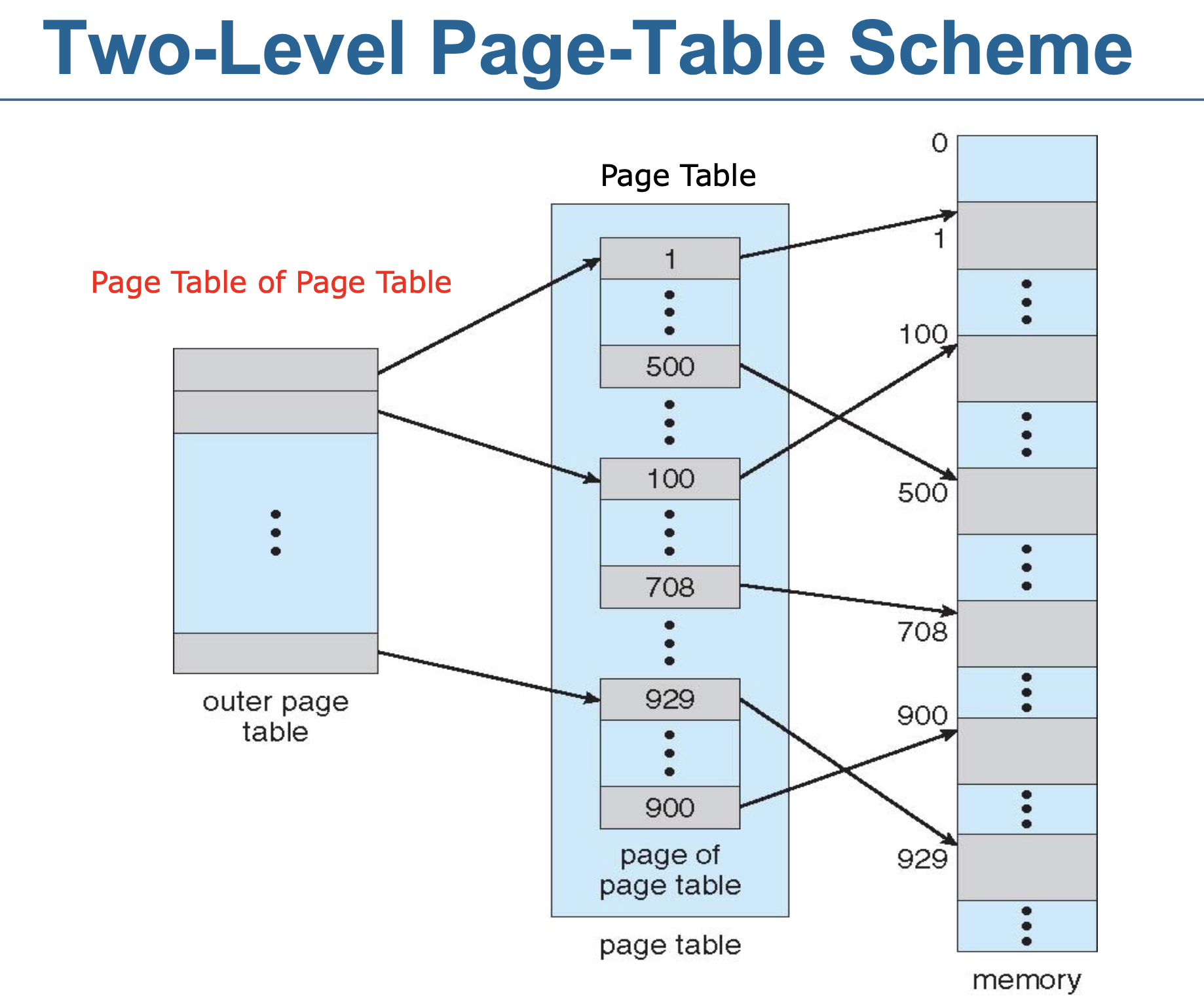 - 실제 사용하는 일부 주소 영역에 대해서만 페이지 테이블이 할당된다.