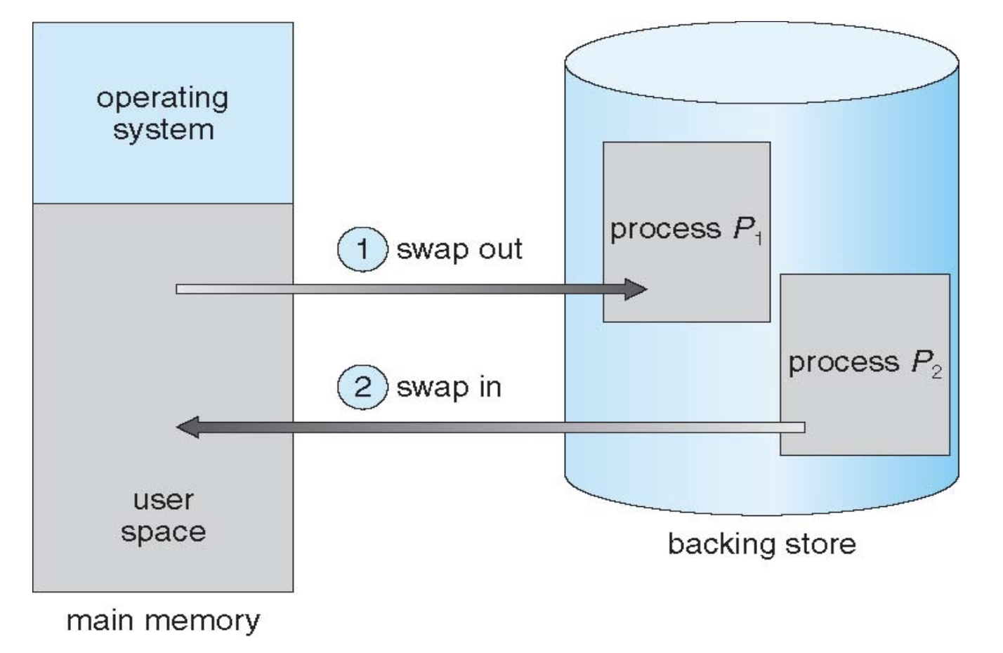 - 심지어 내 렘이 16기가인데 실행시키고 싶은 프로세스가 20기가면 out of memory가 발생할까? -> 정답은 No!, 초과부분은 그냥 디스크에 넣어두고 번갈아 가면서 동작시키면 된다.(성능저하는 피할 수 없음)