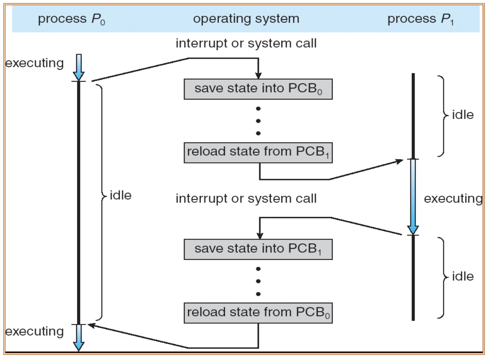 CPU가 다른 프로세스로 전환할 때, 시스템은 반드시 이전 프로세스의 상태를 저장하고, 새로운 프로세스의 저장된 상태를 컨텍스트 스위칭(Context Switch)을 통해 로드한다.