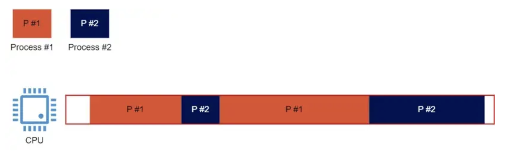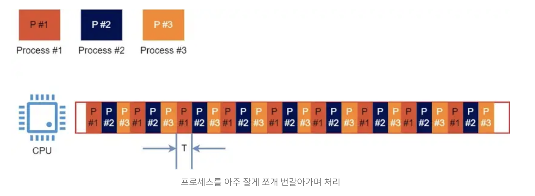 : 멀티 태스킹은 각 프로세스를 매우 짧게 쪼개서 돌아가면서 작업을 수행하게 된다.