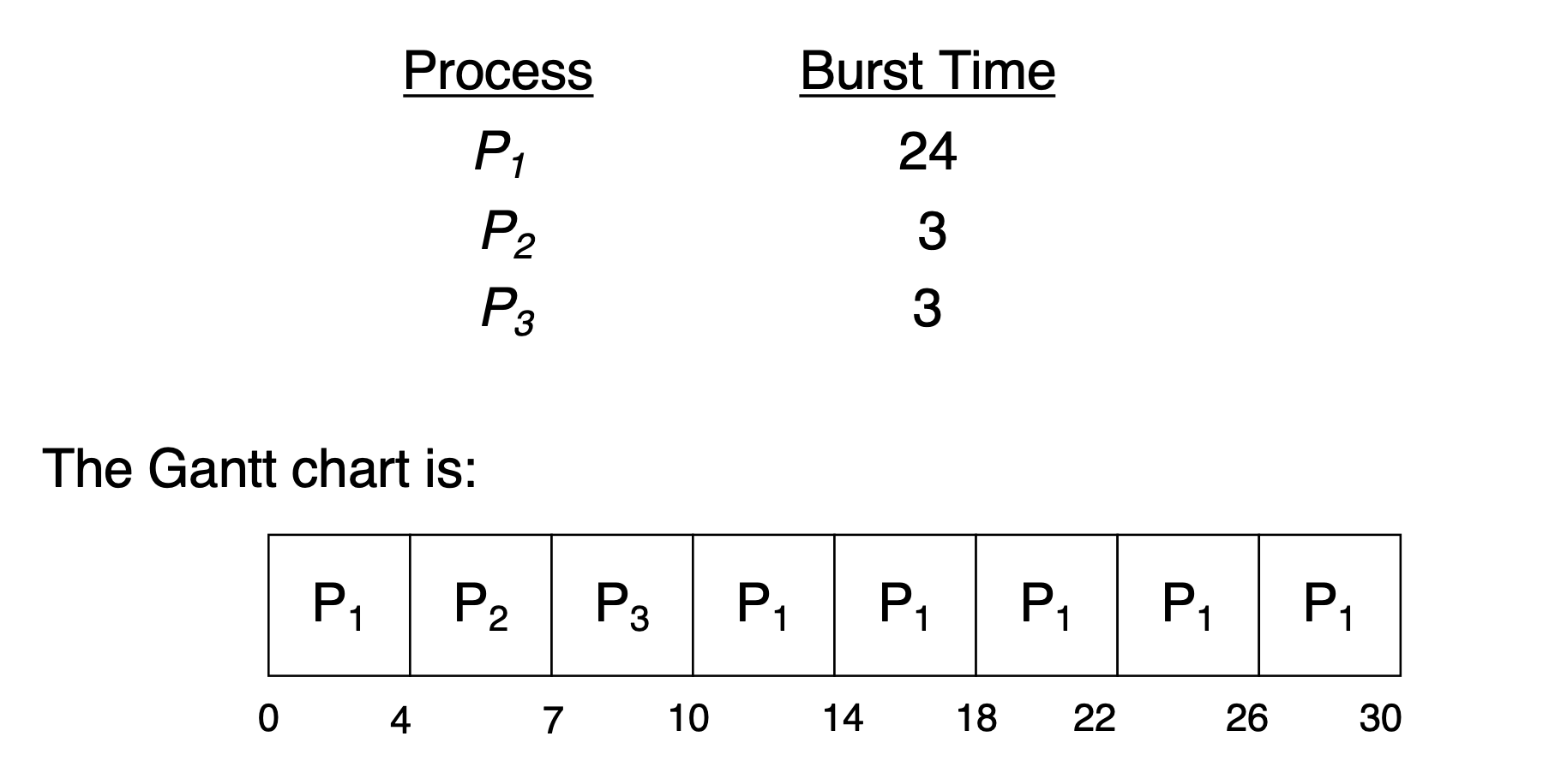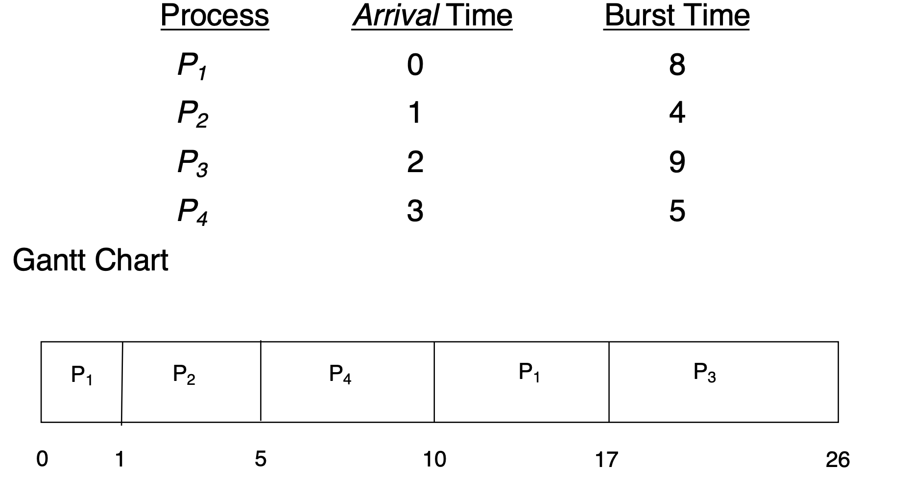 Average Waiting Time = P1(9) + P2(0) + P3(15) + P4(2) = 26 이를 4로 나누면 6.5가 나온다.