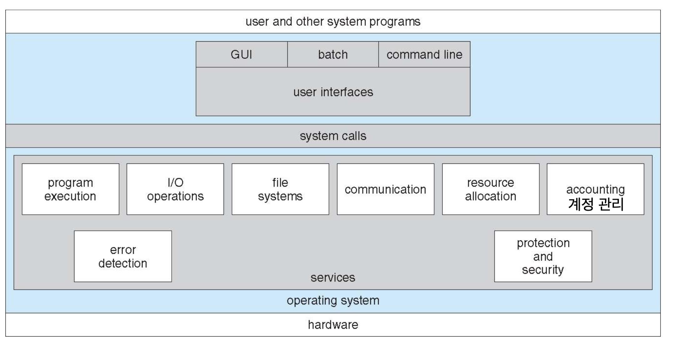 아래 그림을 통해 운영체제의 구조에 대해 천천히 살펴보도록 하겠다.