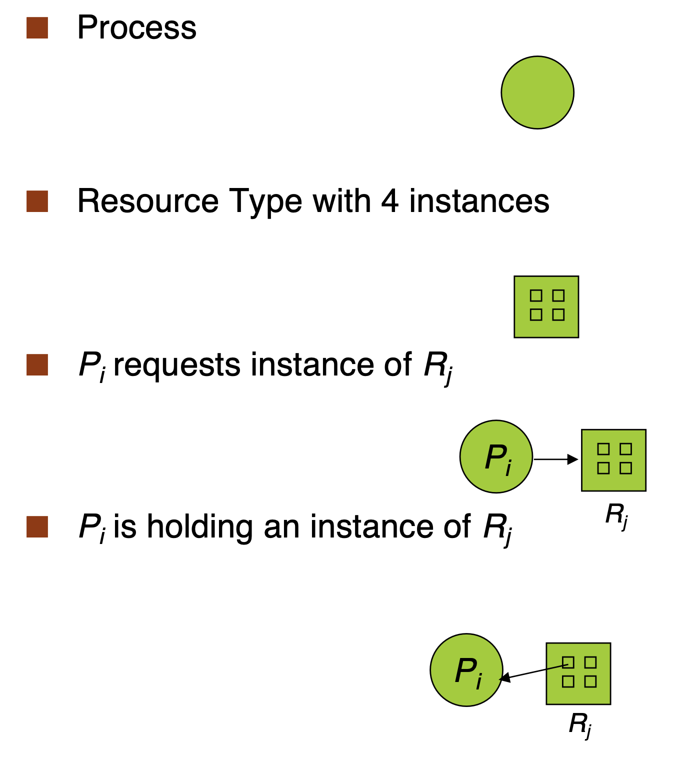 R1, R2처럼 자원 타입이 여러 인스턴스를 가지게 되면 여러 프로세서에 할당될 수 있다.