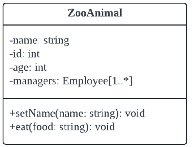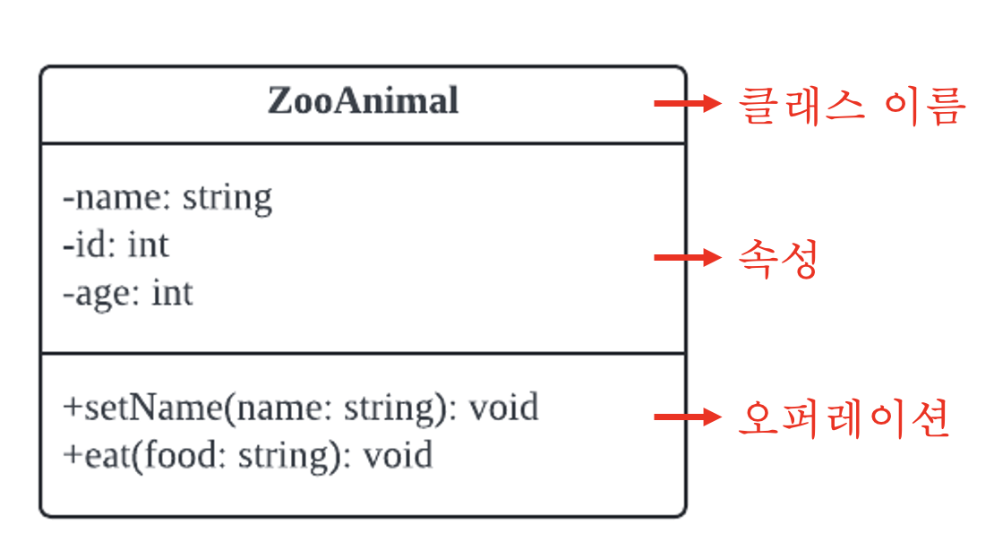 박스로 표시하고 위에는 클래스 이름, 중간은 속성 (멤버 변수), 하단에는 메서드를 표시한다.