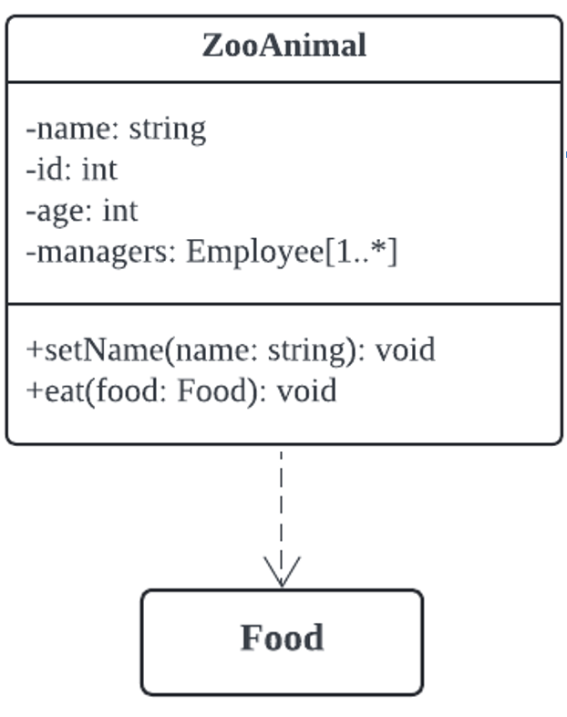 -> 점선을 이용해 표현한다. interface랑 비슷하지만 빈 삼각형이 아니다.