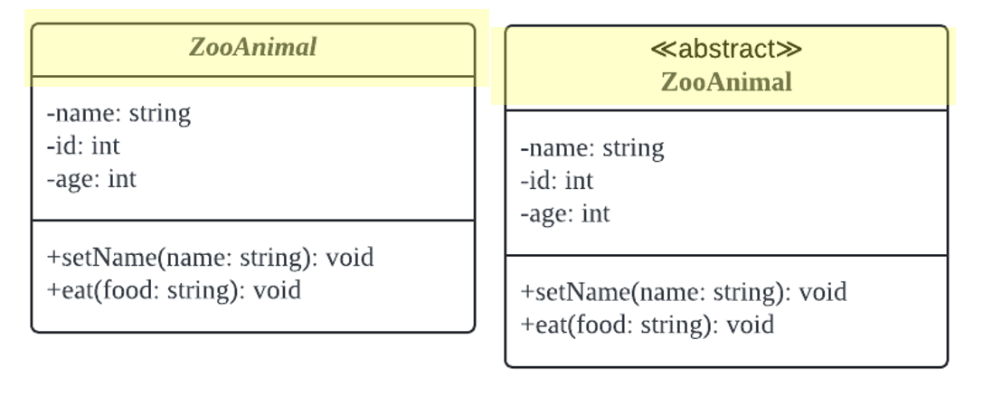 이렇게 기울여진 글씨(이탤릭체) 혹은 abstract를 표시하는 방법으로 추상클래스 임을 나타낼 수 있다.