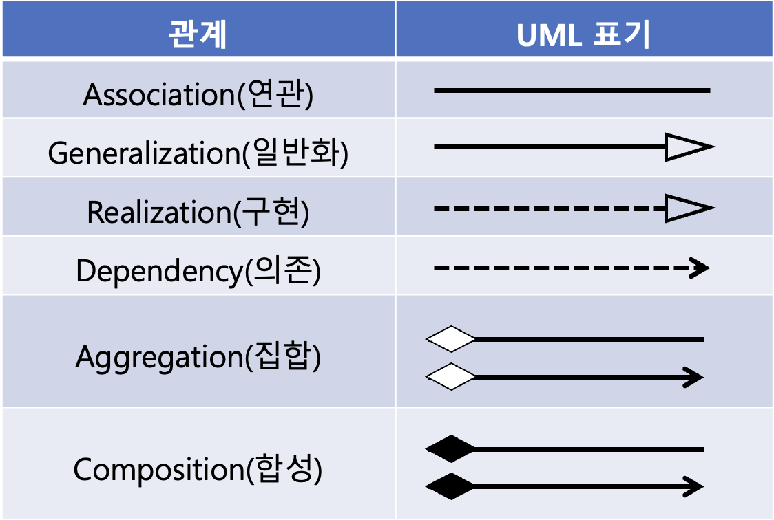객체 사이의 참조 관계가 있는 경우 사용한다.