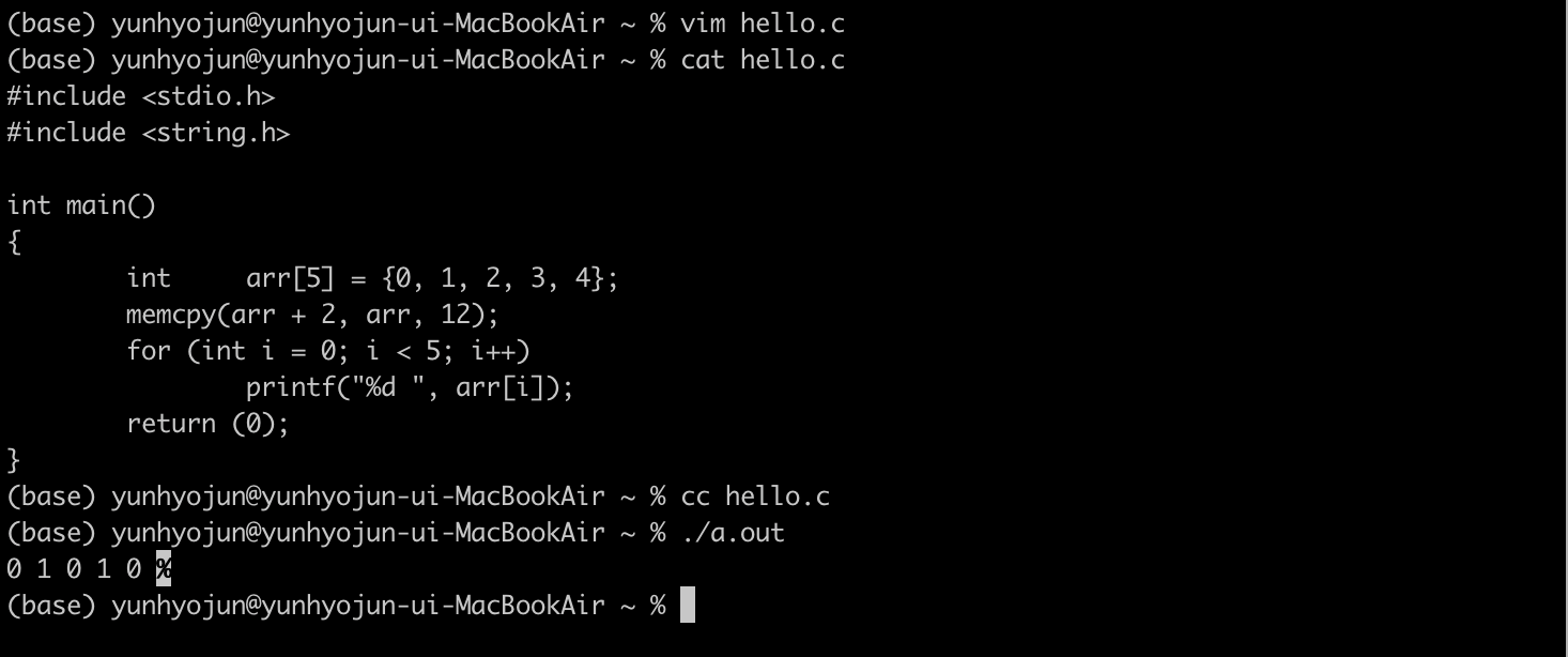 src의 영역과 dst의 영역이 겹친다면 memmove를 사용하자!(memmove는 다음 게시글에서 설명하겠다!)//배열 복사